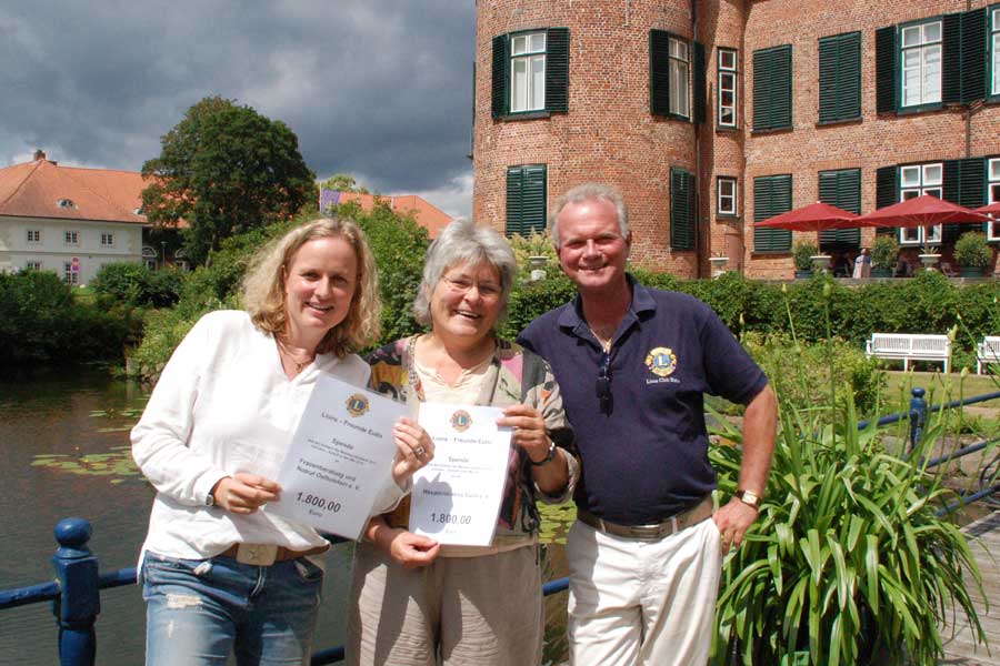 Der scheidende Clubpräsident Detlev Küfe konnte eine positive Bilanz der Benefiz-Veranstaltung "Schloss in den Mai" ziehen und zusammen mit den Einnahmen der vergangenen Weihnachtslotterie in Eutin, Bosau und Malente Spenden in Höhe von jeweils 1800 Euro an die Hospizinitiative Eutin e.V. und die Frauenberatung und Notruf Ostholstein e.V. überreichen. Weitere 1300 Euro erhält der Mittagstisch für Bedürftige der evangelische Kirchengemeinde Eutin.
